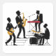 Bring the rhythm to life with this sticker featuring a silhouette of a live band in action. Each musician is outlined in bold black, with pops of colour highlighting their instruments - a guitar, a saxophone, a keyboard, and a drum set. Perfect for music lovers, band members, and anyone who wants to add a touch of artistic energy to their laptop, water bottle, or instrument case. Let the music play.