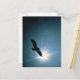 Silhouette of bald eagle flying in sky postcard