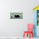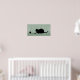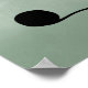 Great poster for cat lovers! Classic black silhouette of a cat playing with a ball of yarn on a muted green textured background.