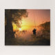 Silhouette of Fisherman on Lake at Sunset Jigsaw Puzzle