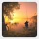 Silhouette of Fisherman on Lake at Sunset Square Sticker