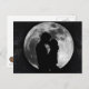 A man and women in love embrace and kiss at night in a front of a full moon.