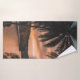 Silhouette of palm tree during golden hour bath towel
