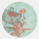 Silhouette of Red Flowers on Teal Background Classic Round Sticker