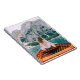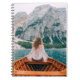 A woman with flowing hair in a boat, enjoying alpine beauty.