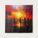A vivid, emotionally charged painting capturing a group of silhouetted figures walking toward the viewer against a blazing sunset sky. Intense reds, oranges, purples, and golds ignite the horizon, while bold brushstrokes create a sense of movement and heat. The central sun radiates across the reflective ground, sharpening the silhouettes and adding dramatic contrast. A lone tree anchors the left side, deepening the scene’s atmosphere. Perfect for lovers of expressive color, dramatic landscapes, and evocative storytelling through art.