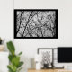 Black and white image. This is a low resolution image for the web, the print you'll get has sharp detail. Silhouettes of tree tops against a cloudy sky. Photography by Minerva Bloom.