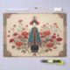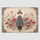 On a delicate parchment background, a stylised Eastern woman stands gracefully in a traditional kimono. The kimono, decorated with vivid red flowers, contrasts beautifully with the subtle hues of the parchment, creating a harmonious blend of tradition and artistry. The image evokes the feel of classic Japanese art, seamlessly integrating elements of nature and fashion. This scene, perfect for a decoupage craft project, could be used on tissue paper or as a centerpiece in a flippin' furniture transformation, adding an elegant and timeless touch.