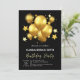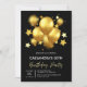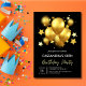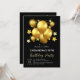 Elegant birthday invitation featuring gold balloons and sparkling stars on a black back drop. Any age birthday invitation.
