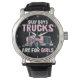 This empowering wall clock makes a playful yet powerful statement about women in trucking. Against a black background with a pink rim, it features a pink semi-truck and the bold text: "Silly Boys TRUCKS ARE FOR GIRLS". It's an ideal gift for any female truck driver who takes pride in breaking stereotypes. The design tool can also be used to add custom text if you want your name or company on this clock. You can customise the colour of the frame to any colour you desire by going into the design tool.