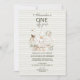 Celebrate your little one's big day with this silly goose first birthday invitation, featuring a sweet trio of whimsical geese surrounded by soft white florals, a birthday hat, and pastel gift boxes. The muted green striped background adds a fresh, minimalist touch while keeping things playfully rustic. Ideal for cottagecore, coquette, or storybook-themed baby girl birthdays. Personalise the editable text to match your party details.