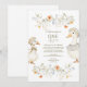 Invite loved ones to a whimsical first birthday party with this soft and storybook-inspired design. Featuring two adorable silly geese dressed in charming vintage outfits, surrounded by delicate orange and blue wildflowers, this invitation blends a sweet nostalgic mood with a modern neutral palette. Perfect for a spring or nature-themed baby celebration with a touch of coquette and cottagecore charm.