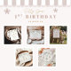 Adorably silly and perfectly sweet, this 1st birthday invitation features three geese in vintage hats and bows beneath a canopy of watercolor florals. With soft beige tones, hand-painted details, and a storybook woodland charm, it’s an ideal pick for a neutral, nature-inspired celebration — whether you’re planning indoors or under the trees.