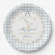 Silly Goose Blue Bow Daisy Gingham Baby Shower Paper Plate