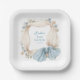 Serve your guests with style and charm using these Silly Goose Blue Floral Paper Plates. Perfect for a boy’s baby shower or a gender-neutral celebration, this high-end design features a voluminous, cream-colored ribbon wreath accented with delicate blue wildflowers and soft peach blossoms. A large, beautiful blue bow with a subtle star pattern serves as the elegant focal point at the bottom of the design.