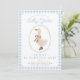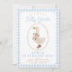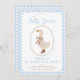 Cute blue gingham birthday invitation with a goose in boots.