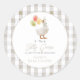 Silly Goose Greige Gingham Baby Shower Classic Round Sticker