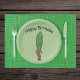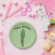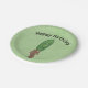 This paper plate is green with a silly man in a brown suit with red tie with a big green pickle for a head that has a face. Customise the Happy Birthday text with the template.