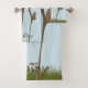 Stretch the adorable monkey is hanging out with his three tiny ladybug friends. Make this bath towel set your own by adding your own text, or delete to leave blank. Based on an original art piece by © One Artsy Momma.