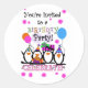 Silly Penguins Birthday Cards and Invitations Classic Round Sticker