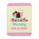 A flex magnet with a funny saying - Working until ice cream. Illustrated with a yummy chocolate ice cream bar, a 3-scoop sundae with a chocolate topping, sprinkles and a little cherry on top. And a strawberry float with whipped cream.