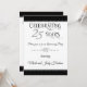 Start your Anniversary Party off right with our Golden 25th Wedding Anniversary Celebration party invitation featuring a stunning invitation on white and black background with silver double hearts.
