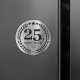 Silver brushed metallic style 25th-anniversary magnet with a business logo. Ideal for the employees or as promotional supplies for customers. Commemorative design with a laurel branch and stars. The logo can be changed for text by clicking the button to edit the design.
