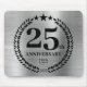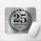 Silver brushed metallic style 25th-anniversary office mouse pads with a business logo and year. Commemorative design with a laurel branch and stars. The logo can be changed for text by clicking the button to edit the design.