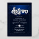 Cool blue and silver foil silver wedding anniversary party invite customisable to your event specifics. The foil effect on the "Silver" typography is not real.