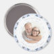 Pretty Silver Gray 25th Wedding Anniversary Keepsake Photo Gift Magnet. In variations of soft gray for your twenty fifth year of marriage. A modern geometric pattern round border surrounds the picture in the middle. Replace the photo on this budget friendly fridge magnet with a picture of your own wedding celebration. The default text at the top says “David and Sarah” in gray. At the bottom are the words “Happily Married 25 Years!”, in gray. Personalize this by changing the names at the top and the text and year at the bottom; and the photo. Give as a magnetic present for your partner or spouse on your wedding anniversary, or as a gift for family. Your wife or husband will love putting this magnetic gift on their kitchen fridge or home office notice board to celebrate their marriage, or of their family and friends. In lovely, bright and light summer colors. A pretty create your own custom twenty fifth anniversary gift.