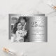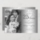 25th Wedding Anniversary Invitation with Photo. Elegant design in silver with script font and diamonds confetti. Can be customized to show any year of marriage. Cheers to 25 years!