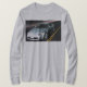 A sweet Nissan 350Z in Silver at full blast on a highway on the front. Silver and Black "Z" Emblem adorns the back of this grey long sleeve shirt.