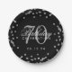 Silver 70th Birthday Glitter Confetti Black Paper Plate