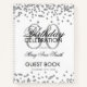 An elegant 80th Birthday Party Guest Book template with Silver Glitter Confetti design and easy to customise text.