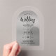 This modern acrylic wedding Invitation can be clear or frosted, rectangle or arch shaped as desired to suit your needs. You can change the colour of the text in design tools.