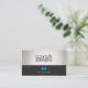 An elegant and chic design. DIGITAL IMAGE of subtle gradation of silver foil and black linen textured thick stripe - not real foil or linen. Large font typography. Beautiful cobalt blue butterfly gives a subtle girly touch. A strong memorable card for beauty and fashion professionals, wedding consultants and bloggers, salons and spas or any image conscious business.