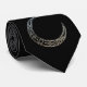 A shiny silver crescent moon in a Celtic knot style design on a black background.