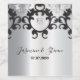 Personalised elegant wedding wine label design featuring stylised baroque black and silver border on a matching silver background. The text is fully customisable.