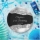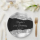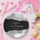 This elegant and glamourous birthday party plate features silver faux glitter glam tears on a black background. The text combines handwritten script and modern sans serif fonts for a classy and sophisticated look.