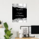 This elegant and glamourous birthday party welcome sign features silver faux glitter glam tears on a black background. The text combines handwritten script and modern sans serif fonts for a classy and sophisticated look.