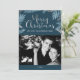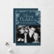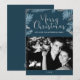 Silver and Blue Leaves Merry Christmas Photo Holiday Card