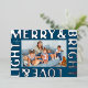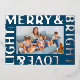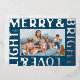 Shiny raised silver foil text on deep blue light up this modern text based frame holiday card with the wording "Merry & Bright Love & Light." The family name text and a landscape photo are easy to swap out to make this card one of a kind. The blank backside of this card gives you free range to really make it yours by adding a short message, a long form letter or more photos.