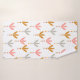 This towel set has a gold washcloth, a silver hand towel, and a bath towel with a Boho design of three leaves together with three dots below them in silver, gold, and pink gold.