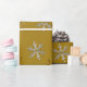 Silver and gold snowflake pattern Christmas wrapping paper. Quality gift wrap on a roll has optional length choices. Dark gold paper has large pattern of snowflakes and crystals in silver grey and darker gold colours.