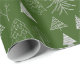 Wrap your holiday gifts with this adorable custom green and white tree pattern Christmas wrapping paper. Gift wrap has a forest of silver faux foil trees on a green background.