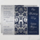 This elegant silver grey and navy blue damask wedding program folds down the centre. If you need any help customising this with your own information, or if you have any requests, please email niteowlstudio@gmail.com. ***PLEASE NOTE that if you upgrade to the more expensive paper, that it is a light cardstock that does not fold well.