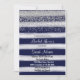 Bridal shower invitation with silver glitter design and navy blue stripes watercolor background.
