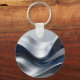 Silver And Navy Fluid Waves Abstract Modern Design Key Ring