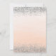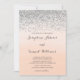 Wedding invitation with faux silver glitter design and peach ombre watercolor background.