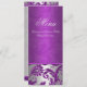 This elegant silver and purple damask menu card on basic paper matches the invitation and other items shown below. If you require any other matching items, please email your request to niteowlstudio@gmail.com.